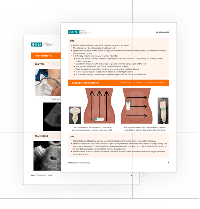 The GUSI OB Essentials POCUS Pocket Guide provides portable, quick-reference ultrasound insights for obstetric care, empowering clinicians to make accurate, real-time diagnostic decisions. Enhance your expertise with the Obstetrics POCUS Essentials Course.Learn More